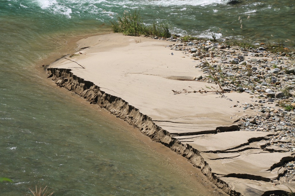 台風の影響で砂場ができました。 あちこちでみられます 砂 多すぎ。